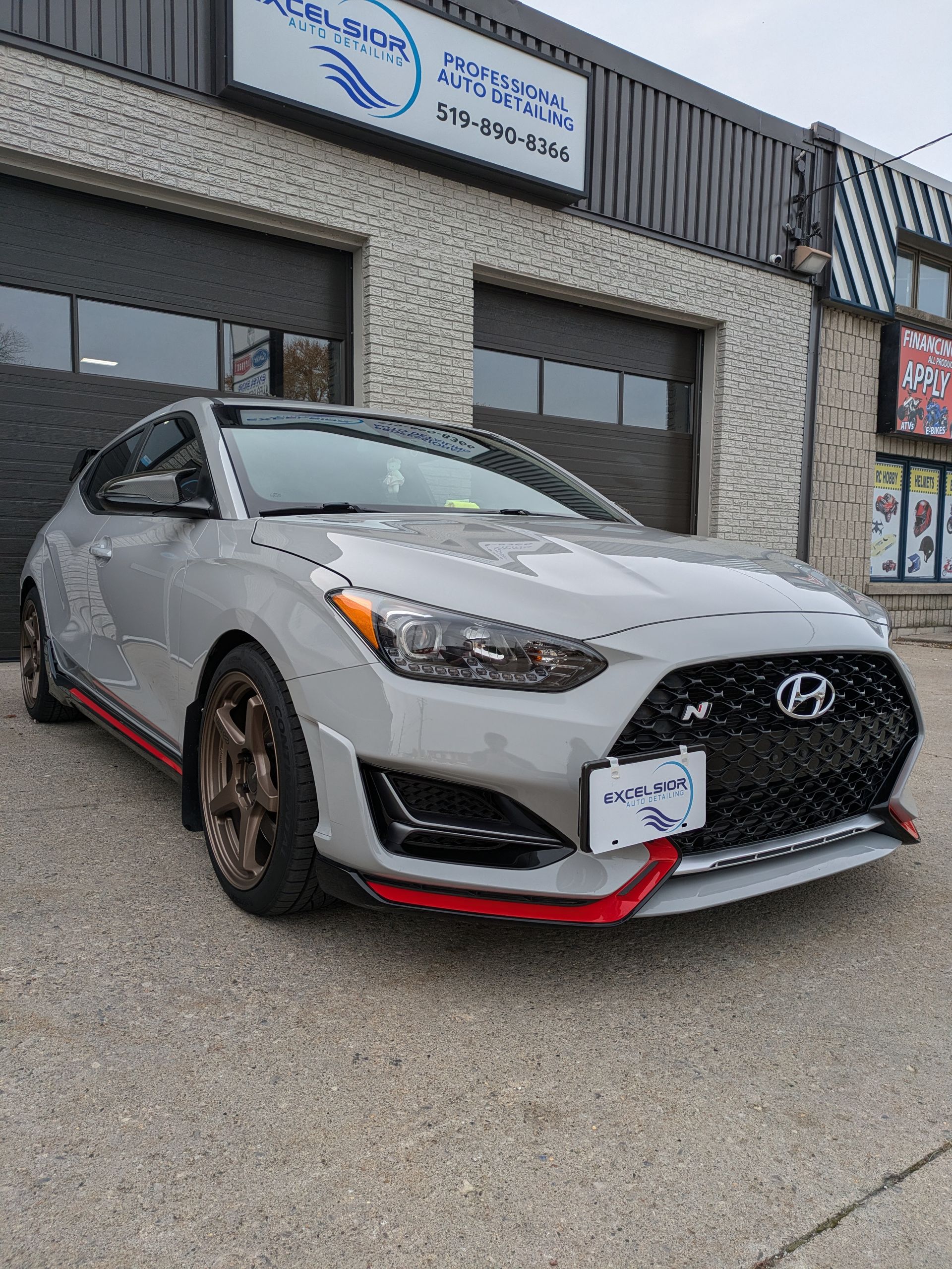 Hey everyone, Andrew here at Excelsior Auto Detailing in Windsor, Ontario. We recently gave a 2021 Hyundai Veloster N the ultimate upgrade with our premium protective coatings. Known for its performance and bold design, the Veloster N now shines even brighter and is ready to take on the road with lasting durability and protection.